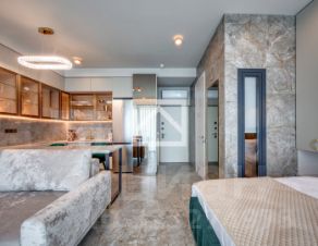 Апартаменты расположены на 6 этаже 9-этажного комплекса. Ключевыми преимуществами студии являются — новый дизайнерский ремонт, полная готовность к проживанию, инвестиционная привлекательность, шикарные видовые характеристики и статус комплекса.