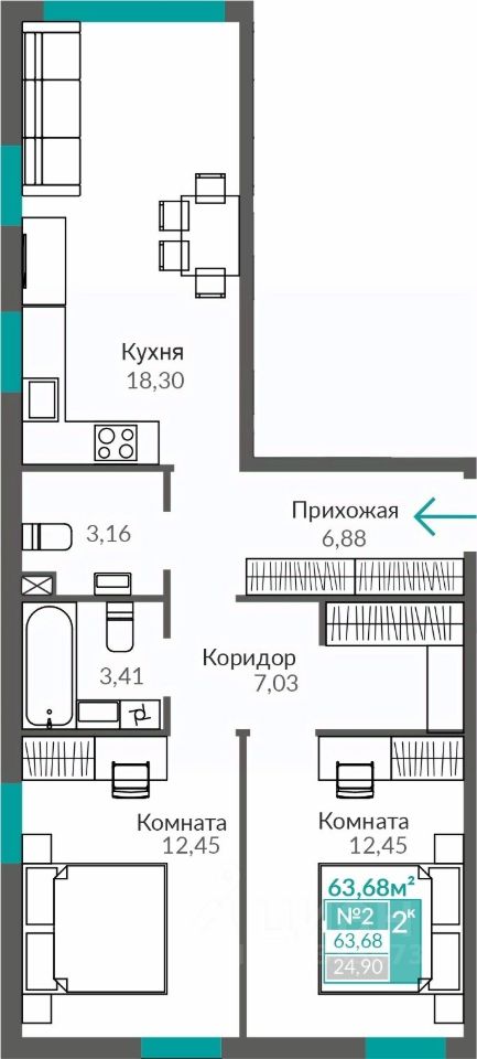 Продаётся 2-комнатная квартира в строящемся доме (дом 1), срок сдачи: I-кв. 2027, общей площадью 63.68 кв.м., на 1 этаже. Новый жилой комплекс "Абрикос" от застройщика "Монолит" расположен по адресу Республика Крым, Симферополь, Ростовская улица.