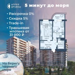 ЗВОНИТЕ ПРЯМО СЕЙЧАС, ЧТОБЫ ПОЛУЧИТЬ ВЫГОДУ ДО 650 000 руб! Цена указана со скидкой 5% при условии 100% оплаты либо ипотека. АКЦИИ: * Ипотека от 14,7% * ТРАНШЕВАЯ ИПОТЕКА - ПВ от 20%, платежи от 31000 в месяц * Рассрочка 0% до 2028г. ПВ от 20% * Скидка 5% * Бронь на 30 дней * 5 мин до моря пешком, планировки от 30 кв.м. * Высота потолков 3 м , предчистовая и чистовая отделка * Ипотека от СБЕРБАНКА * Доходность инвестиций от 30% годовых. * Сдача в аренду от управляющей компании (доверительное управление) позволяет получать доход от сдачи апартаментов без вашего участия * Безопасная сделка по ФЗ-214/эскроу-счёта "Аллея Дружбы" — это комплекс апартаментов бизнес-класса в Евпатории, расположенный в 5 минутах прогулки от золотистых пляжей Чёрного моря. Два современных 12-этажных корпуса с панорамными видами на море объединены стильным стилобатом с центральным входом и бутиковыми retail-площадями, а закрытая территория и подземный паркинг обеспечивает приватность и безопасность. АРХИТЕКТУРА И КОНСТРУКТИВНЫЕ ОСОБЕННОСТИ: • 12-этажное здание в авторском архитектурном стиле • Высота потолков (от 2,9 м до 3,1 м) • Эксклюзивное решение для первых этажей (высота потолков 3,4м) • Евро планировки с террасами и гардеробными • Панорамное ламинированное остекление • Индивидуальные келлеры • Видовые лоты на море • Высокоскоростные лифты по концепции 5* отеля • Предусмотрено резервное электроснабжение • По проекту предусмотрено место для кондиционера и практическое решение для маскировки коммуникаций ЛОКАЦИЯ И ОКРУЖЕНИЕ: • До центра Евпатории - 7 минут на машине • Пляж - всего 5 минут пешком • Рядом с комплексом развитая инфраструктура (рестораны, магазины, кафе, медицинские учреждения, санатории) ГОСТЕПРИИМСТВО И БЕЗУПРЕЧНЫЕ СЕРВИСЫ: • Управляющая компания премиум-класса • Консъерж-сервис 24/7 • Доставки продуктов и готовой еды • Зона ресепшн оформлена в стилистике комплекса • Лобби с атмосферным кафе и зонами для чтения • Премиальное решение для мест общего пользования • Интерактивная детская комната для самых маленьких • Пункты выдачи товаров от маркетплейсов • Гостевые парковочные места • Организовано место для хранения колясок ваших малышей • Ремонт на выбор "Комфорт-формат" и "Гранд-формат" БЕЗОПАСНОСТЬ И ТЕХНОЛОГИИ СПОКОЙСТВИЯ: • Закрытая территория, двор без машин • Система контроля доступа (строго по электронным пропускам) • Подземный паркинг с тремя типами машиномест • Выделенные места для велосипедов • Камеры видеонаблюдения • Круглосуточный ресепшн • Телеметрия - автоматический сбор и передача данных с приборов учета апартамента минимизирует ошибки и мошенничество • Система умного апартамента с дистанционным управлением БЛАГОУСТРОЙСТВО ТЕРРИТОРИИ: • Ландшафтный дизайн по проекту (2 334 м² озеленения) • Прогулочные аллеи и зоны отдыха для расслабления и медитации • Коворкинг-зоны с высокоскоростным Wi-Fi для бизнес-переговоров • Детские и спортивные площадки • В апарт-комплексе вас ждут мини-маркет и магазин повседневных товаров