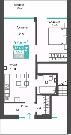 Продаются 2-комнатные апартаменты в строящемся доме (Корпус 2), срок сдачи: III-кв. 2024, общей площадью 57.7 кв.м., на 1 этаже. КУРОРТНЫЙ КЛУБ С ЗАБОТЛИВЫМ СЕРВИСОМ