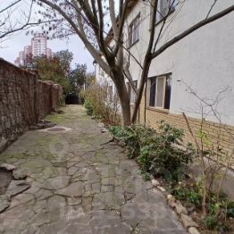 Уютный двор вымощен камнем и плиткой. Огорожен забором, есть камеры наблюдения.