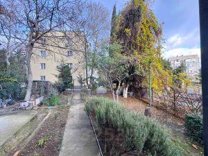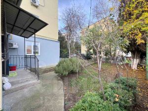 Есть свой огороженный полисадник, деревья, цветы, свой дворик.