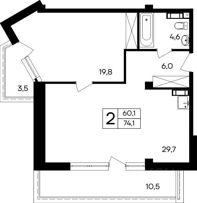 74,1 м²