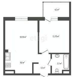 Просторная однокомнатная квартира, площадью 39.5 м² , расположена на видовом седьмом этаже современного жилого комплекса комфорт-класса.