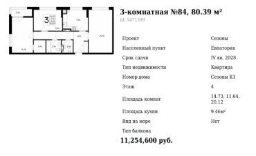 -просторные трёхкомнатные квартиры 80 м²