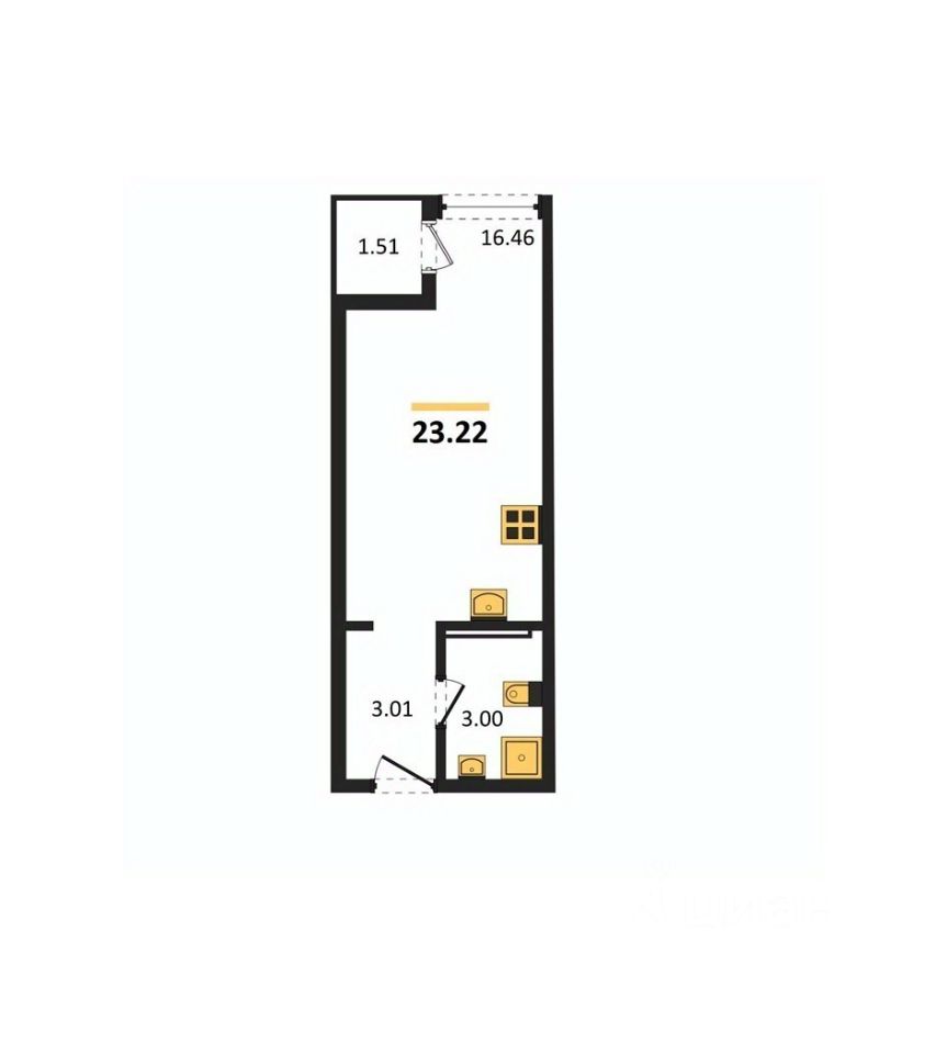 Общая площадь23,22 м²