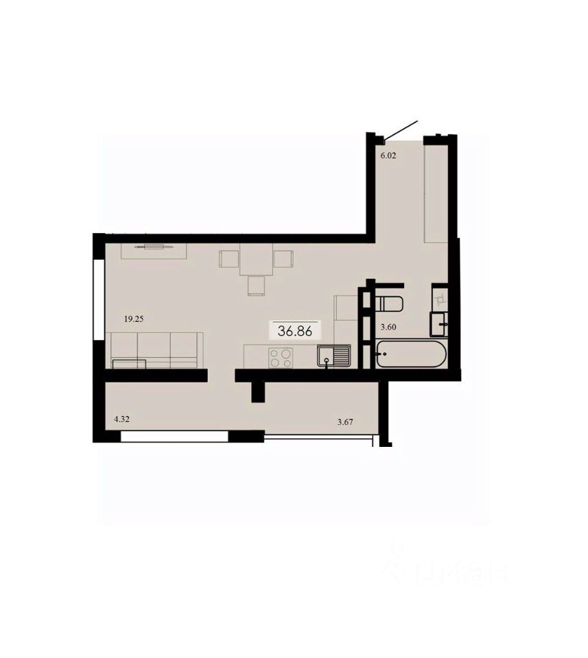 Общая площадь36,86 м²