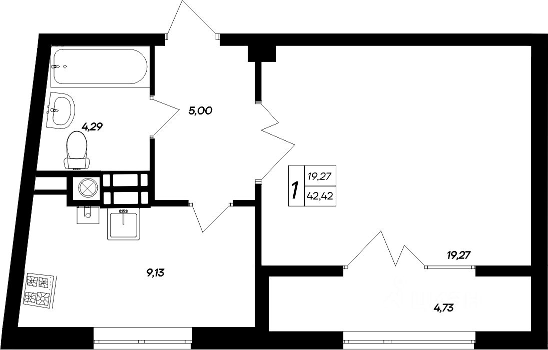 Продаётся 1-комнатная квартира в строящемся доме (Корпус 1), срок сдачи: II-кв. 2027, общей площадью 42.42 кв.м., на 3 этаже. "Парковые кварталы" - новый объект от "ИнтерСтрой"
