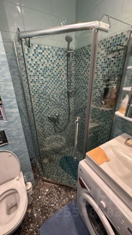 Совместный санузел, душевая кабина, стиральная машина.