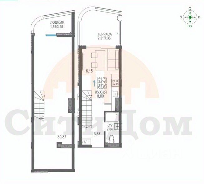 - Площадь: 62.63 кв.м, позволяющая воплотить ваши дизайнерские идеи и организовать пространство по вашему вкусу.