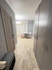 - Современный ремонт: ламинат в коридоре, кухне и комнате, отделка стен качественными обоями.
