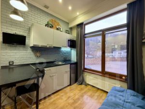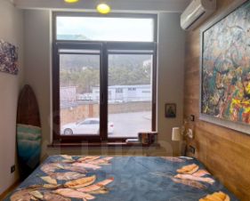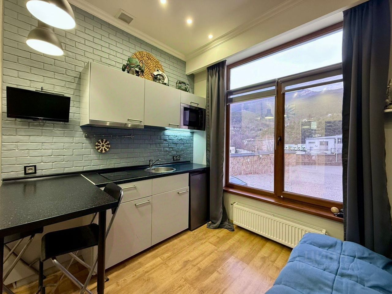 Квартира находится на втором этаже. Планировка продуманная и удобная: изолированная спальня, кухня-гостиная и совмещённый санузел. Панорамные окна по всей квартире открывают приятный вид на горы и наполняют пространство светом и воздухом.
