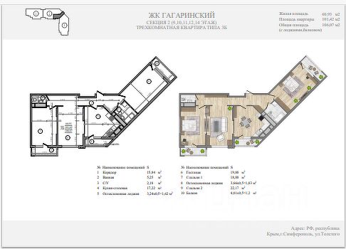 Общая площадь 106,9 кв.м., жилая 60,9 кв. м.