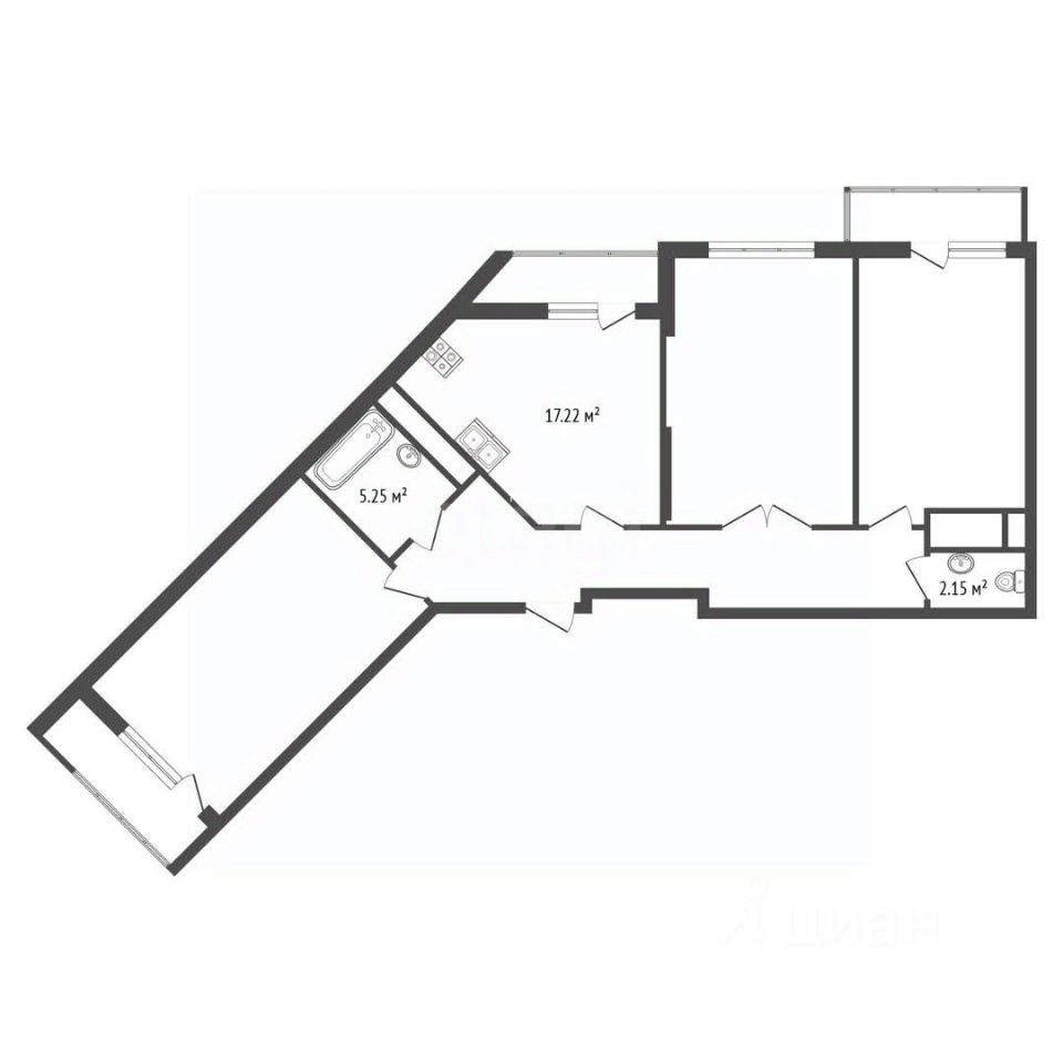 Спальни: 19 и 22 кв. м., гостиная - 20 м.кв., кухня-столовая - 17,2 кв.м.