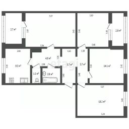 - Площадь: 4 изолированные комнаты с большими окнами, обеспечивающими естественное освещение.