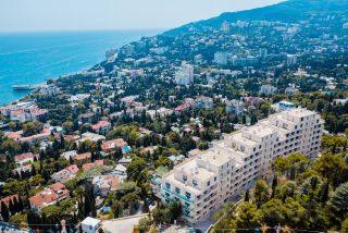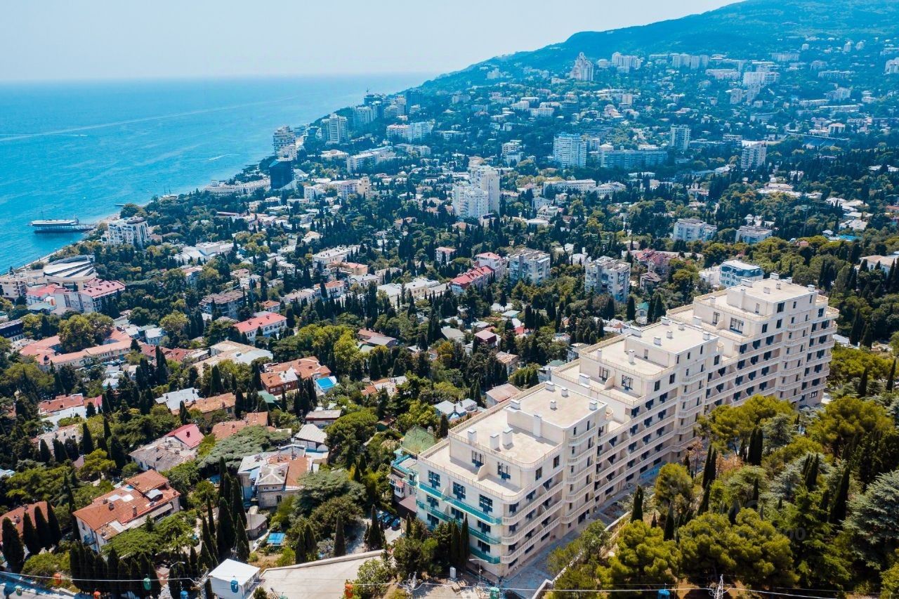 Уникальное расположение позволяет наслаждаться потрясающим видом из панорамных окон с остеклением в пол и просторных балконов на морские и горные пейзажи Ялты.