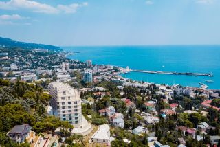 Благодаря тому, что жилой комплекс расположен на возвышенности, из окон квартир открываются панорамный вид на Чёрное море, великолепную Ялту и зеленый парк!Площадь квартир от 41,6 до 350 м.кв., в квартирах балконы и просторные террасы, панорамное остекление в пол, потолки высотой 3.3 м., свободная планировка .