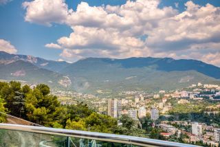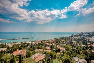 Уникальное расположение позволяет наслаждаться потрясающим видом из панорамных окон с остеклением в пол и просторных балконов на морские и горные пейзажи Ялты.