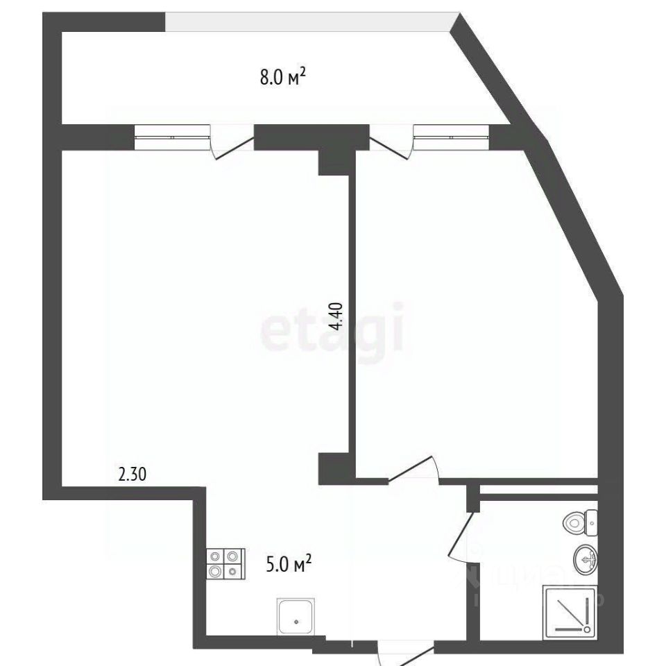 Квартира свободной планировки площадью 60 кв. м с увеличенной жилой зоной за счёт объединения с террасой 8 кв. м. Благодаря удачной конфигурации пространство можно разделить на две функциональные зоны: спальню и объединенную гостиную с кухней. Санузел площадью 5 кв. м удобно спланирован и вмещает все необходимые элементы. Окна и балкон выходят на юго-восток, обеспечивая максимальное естественное освещение в течение дня. С террасы и из гостиной открывается панорамный вид на море, юго-восточное побережье и знаменитый замок Ласточкино гнездо — визитную карточку Южного берега Крыма.