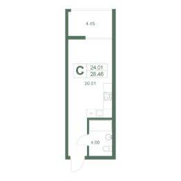 Продаётся студия-апартаменты в строящемся доме (Корпус 3), срок сдачи: I-кв. 2027, общей площадью 28.46 кв.м., на 7 этаже.