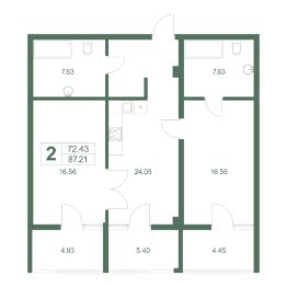 Продаются 3-комнатные апартаменты в сданном доме (Корпус 2), срок сдачи: IV-кв. 2024, общей площадью 87.24 кв.м., на 8 этаже.