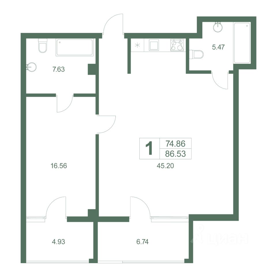 Продаются 1-комнатные апартаменты в сданном доме (Корпус 2), срок сдачи: IV-кв. 2024, общей площадью 86.53 кв.м., на 8 этаже.