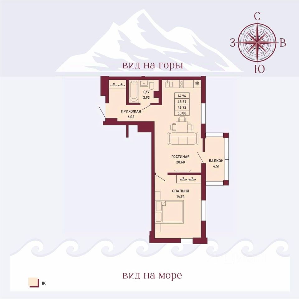 Продаётся 1-комнатная квартира в строящемся доме (Дом 1), срок сдачи: II-кв. 2028, общей площадью 46.92 кв.м., на 8 этаже. Новый жилой комплекс "по ул. Мицко" от застройщика "Крым Море Град" расположен по адресу: Республика Крым, г. Ялта, ул. Мицко