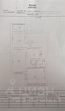 Квартира общей площадью 79,7 м2., жилая 37,8 м2, кухня 17,7 м2, большой с/у 6,9 м2 совмещённый, лоджия 5,7 м2 застеклена (дополнительно установлены радиаторы).