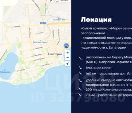 Жилой комплекс "Море" занимает особое для Крыма расположение — в живописной локации у воды, на берегу озера Мойнаки, что выгодно выделяет его среди предложений на рынке недвижимости г. Евпатории;