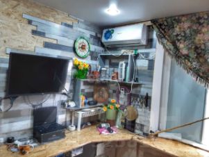 Продается однокомнатная квартира в пгт. Новоозерное на пятом этаже пятиэтажного дома. Квартира общей площадью 31.4 кв. м. и кухня площадью 6.8 кв. м.