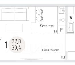 Жилой дом 1 (корпус 1, корпус 2) с отделкой: 1 -2 комнатные квартиры общей площадью от 30 до 45 м2.