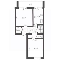 Планировка- чешка, раздельные комнаты (14,1, 13,4 кв м), кухня 8,8 кв. м.,сан.узел раздельный, установлена душевая кабина. В квартире проходит ремонт.