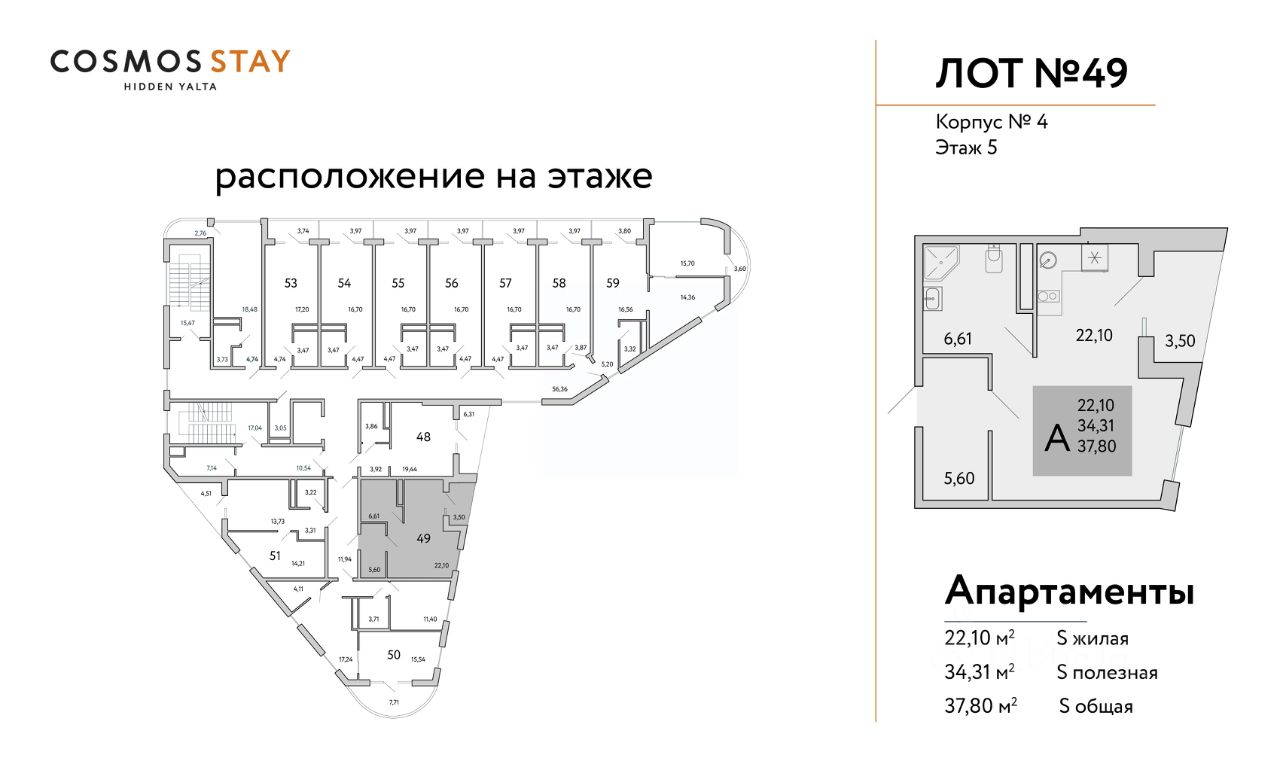 ГОТОВЫЙ БИЗНЕС ПОД КЛЮЧ ДОХОД ОТ 1 500 000 руб. с первого года деятельности отеля. Продаются апартаменты от Застройщика в строящемся комплексе COSMOS STAY HIDDEN YALTA, под управлением ведущего отельера в России COSMOS HOTEL GROUP (COSMOS HOTEL GROUP это Аккредитованная Управляющая компания международных гостиничных операторов). ИНВЕСТИЦИОННЫЕ ПРЕИМУЩЕСТВА КОМПЛЕКСА: - Первый COSMOS STAY в Ялте- Гостиничный номер с ремонтом, мебелью и техникой - Управление номерным фондом командой COSMOS- Прозрачность управления - Гарантированная круглогодичная загрузка комплекса - Глубокое знание и владение бизнесом - БИЗНЕС-МОДЕЛЬ Будущего: круглогодичный и пассивный доход - Среднегодовая доходность 22 % О КОМПЛЕКСЕ COSMOS STAY HIDDEN YALTA это комплекс апартаментов из 5 корпусов для отдыха с собственной развитой инфраструктурой. Находится в Ялте у подножья горы Могаби на южном берегу Крыма, вблизи с живописным горнолесным заповедником, у подножья горы Ай-Петри. Из апартаментов комплекса открываются завораживающие виды на горные вершины и Черное море. ЭТАЖНОСТЬ КОРПУСОВ: до 9 этажей Срок сдачи объекта: IV-кв. 2026г. Квадратура апартаментов: от 25м2 до 80,4 м2. Апартаменты с отделкой и мебелью. ИНФРАСТРУКТУРА КОМПЛЕКСА - Лаунж-зоны - Спа-центр - Детские пространства и площадки для спорта - Всесезонный бассейн - Пространства для медитаций и занятий йогой - Ресторан и Лобби - Супермаркеты и аптека - Консьерж-сервис полного цикла обслуживания с управлением - Экотропы для прогулок - Канатная дорога в 20 минутах КОНЦЕПЦИЯ АПАРТ-КОМПЛЕКСА Предлагает уникальный формат отдыха в стиле Retreat. Здесь созданы идеальные условия комфортного отдыха, заботы о вашем ментальном и физическом здоровье, вдали от городской суеты, в окружении векового леса и природы. Здесь вы найдете всё необходимое для восстановления и перезагрузки. Рассрочка от застройщика, подробности уточняйте в Отделе продаж. Строительство ведется при проектном финансировании СБЕРБАНКА, согласно ФЗ-214. Продажа через эскроу-счета без комиссий и переплат.