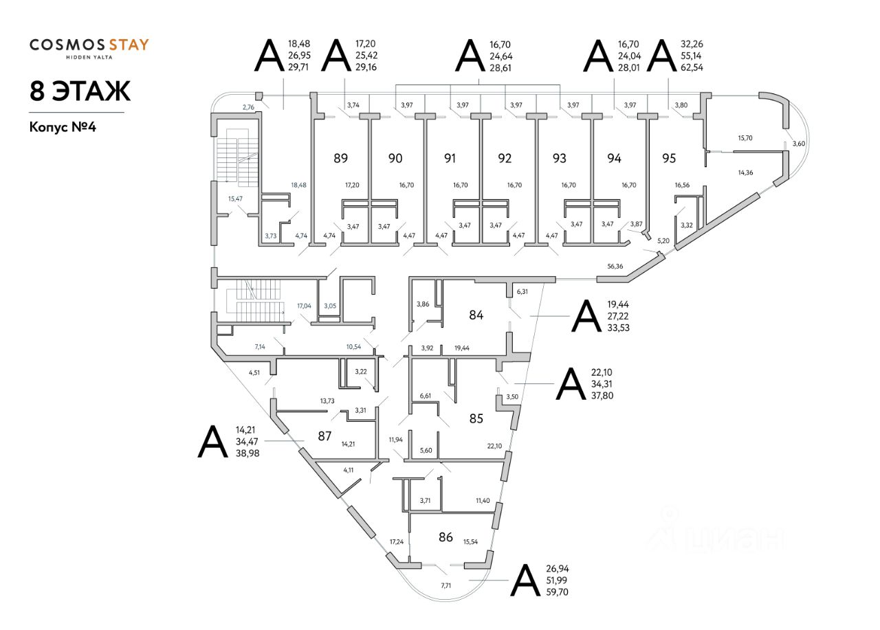 Квадратура апартаментов: от 25м2 до 80,4 м2.
