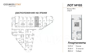 Общая площадь28,61 м²