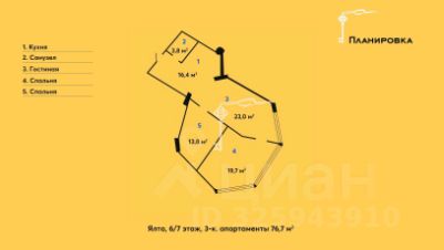 Общая площадь - 76,7 м²