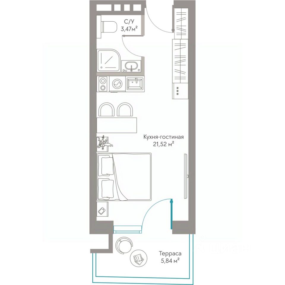 Продаются Апартаменты площадью 30,83 м²с приватной террасой, захватывающим видом на