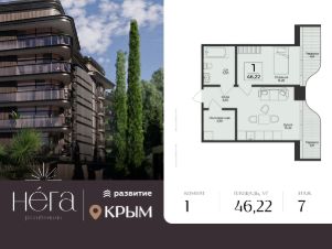Продается квартира площадью 46.22 кв. м с черновой отделкой. Квартира расположена в премиальном жилом комплексе "Нега", на территории прибрежного города Алушта. Девелопером проекта является федеральный застройщик ГК "Развитие".