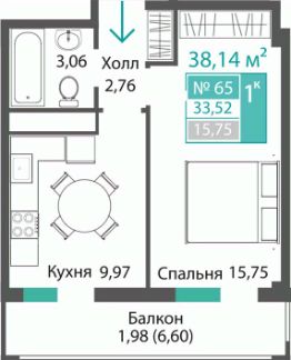 Продаётся 1-комнатная квартира в строящемся доме (ЭТАП 1, СЕКЦИИ А1, А2, А3), срок сдачи: III-кв. 2028, общей площадью 33.52 кв.м., на 6 этаже. Новый жилой комплекс "Семейный квартал ПРОПОЛИС" от застройщика "Монолит" расположен по адресу: Республика Крым, Симферопольский район, с. Мирное, ул. Учительская