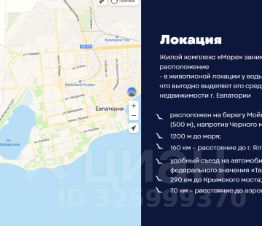 Жилой комплекс "Море" занимает особое для Крыма расположение — в живописной локации у воды, на берегу озера Мойнаки, что выгодно выделяет его среди предложений на рынке недвижимости г. Евпатории;
