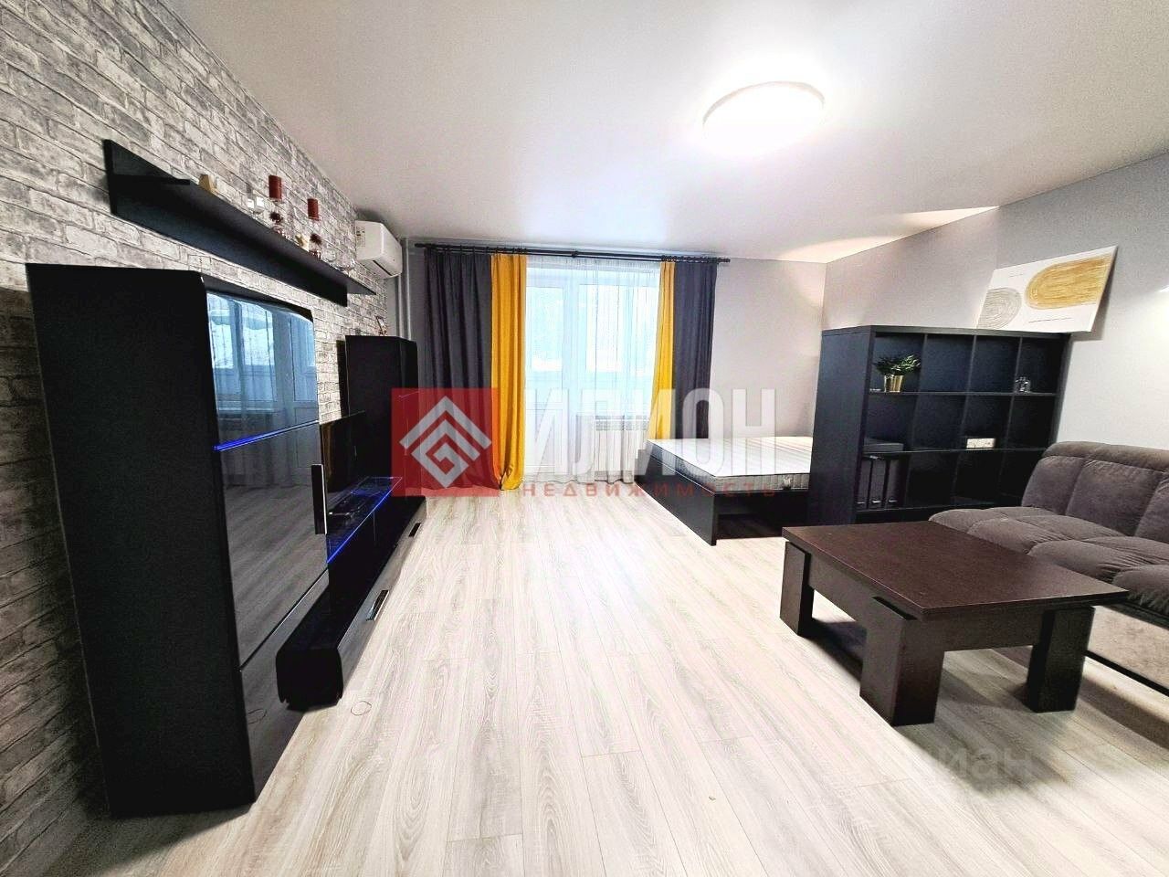 - Зонирование: В комнате выполнено зонирование на две части, что создает дополнительные возможности для организации пространства и уединения.