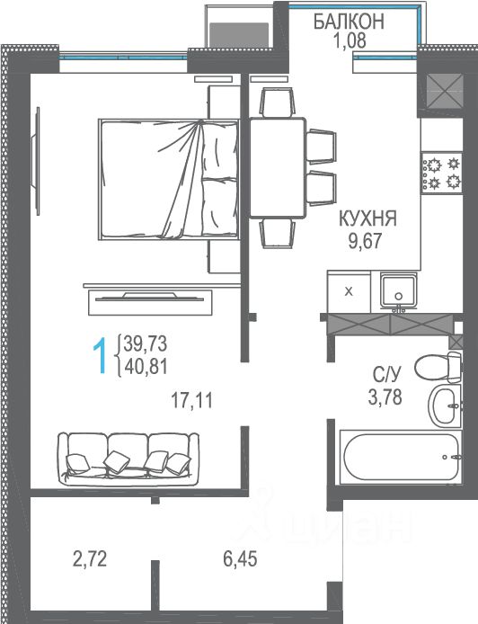 Продаётся 1-комнатная квартира в строящемся доме (Дом 2), срок сдачи: III-кв. 2026, общей площадью 40.73 кв.м., на 7 этаже. Жилой комплекс от застройщика "Интерстрой" в п.г.т. Гвардейское Симферопольского района на улице Курганная.