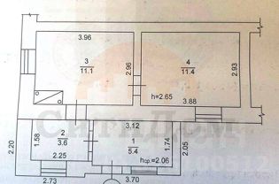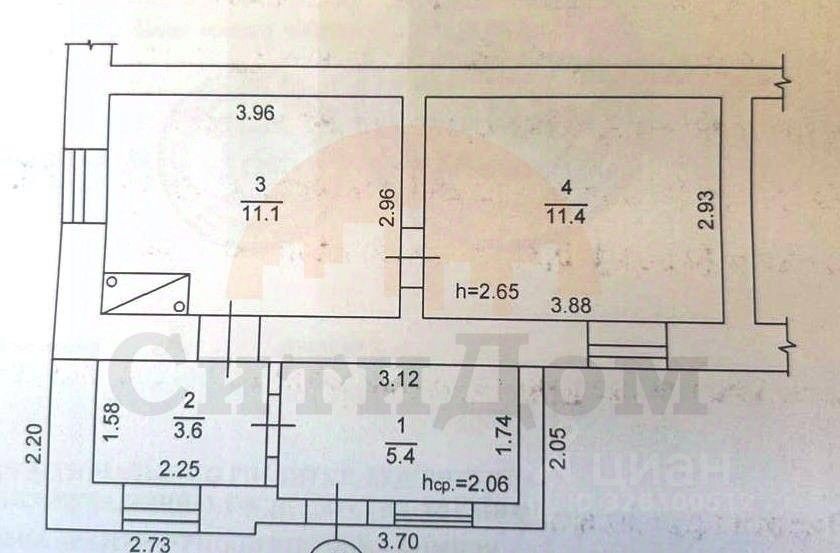 Общая площадь квартиры 31,5 м2, из которых две смежные комната 11,4 и 11,1 м2, кухня 5,4 м2 и совмещенный санузел 3,6 м2.