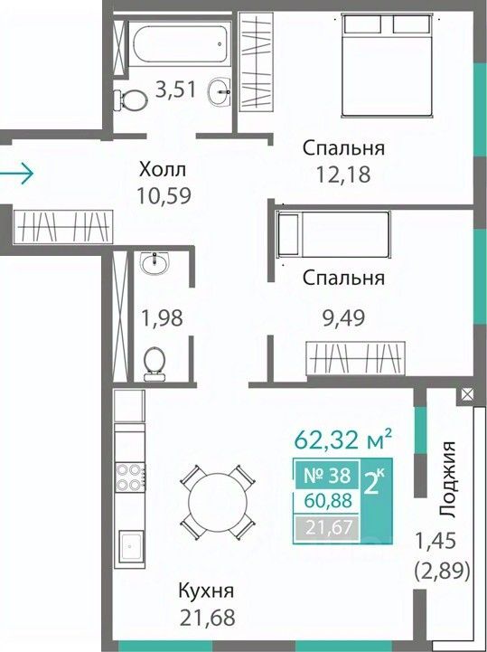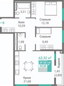 60,88 м²