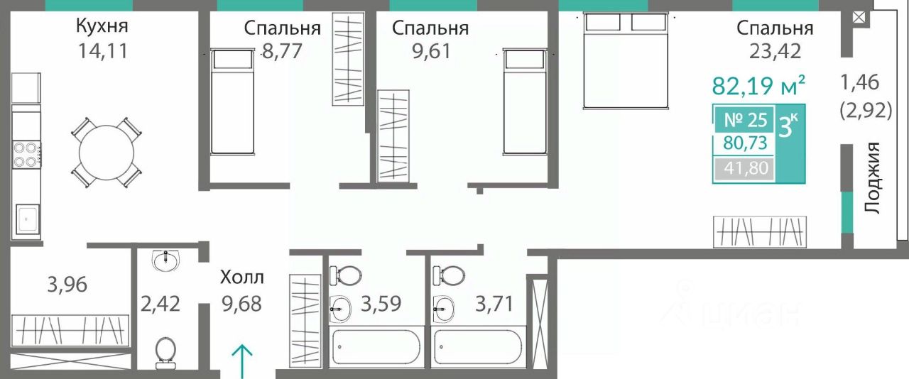 Продаётся 3-комнатная квартира в строящемся доме (Дом 2 (Секции Т2.1, Т2, К3КП1)), срок сдачи: I-кв. 2029, общей площадью 80.73 кв.м., на 3 этаже. Новый жилой комплекс "Благо" от застройщика "Монолит" расположен по адресу: Республика Крым, Симферопольский район, село Перово