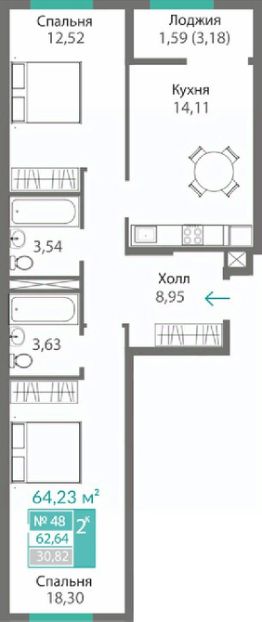 Продаётся 2-комнатная квартира в строящемся доме (Дом 2 (Секции Т2.1, Т2, К3КП1)), срок сдачи: I-кв. 2029, общей площадью 62.64 кв.м., на 3 этаже. Новый жилой комплекс "Благо" от застройщика "Монолит" расположен по адресу: Республика Крым, Симферопольский район, село Перово