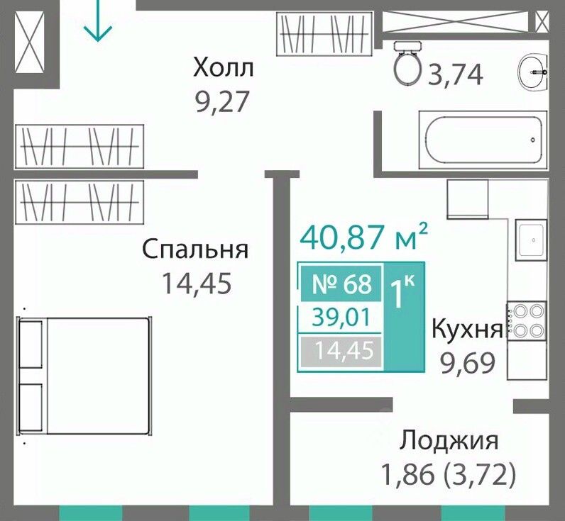 39,01 м²