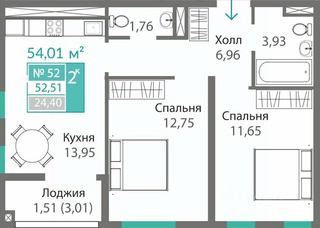 52,51 м²