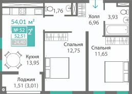 Общая площадь52,51 м²