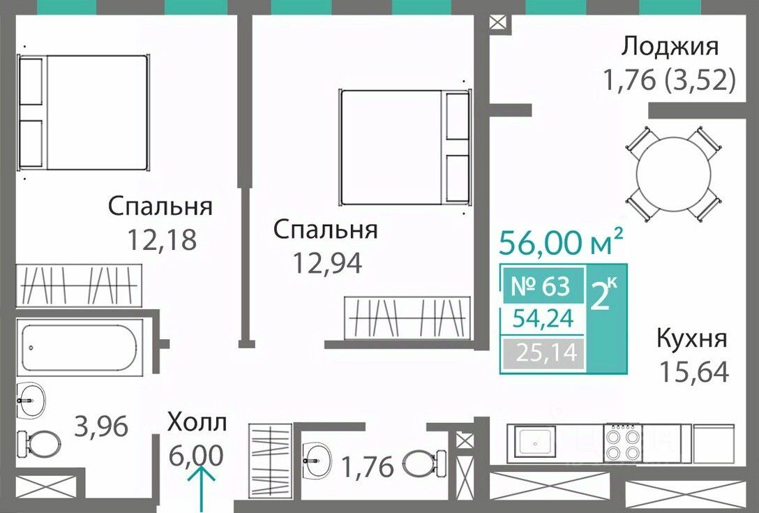 Продаётся 2-комнатная квартира в строящемся доме (Дом 3 (Секции Т3.3, К3КП2)), срок сдачи: I-кв. 2029, общей площадью 54.24 кв.м., на 4 этаже. Новый жилой комплекс "Благо" от застройщика "Монолит" расположен по адресу: Республика Крым, Симферопольский район, село Перово